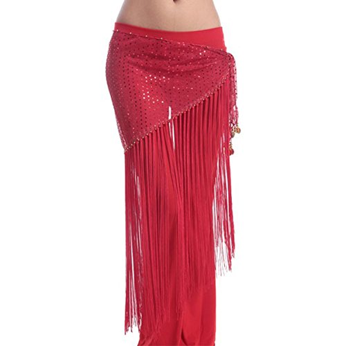 Sciarpa per danza del ventre, lunga nappa, con frangia lucida, lunghezza intera Rosso Etichettalia unica