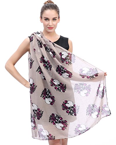 Lina & Lily Sciarpa da Donna con stampa Rose e Teschi (Cachi)