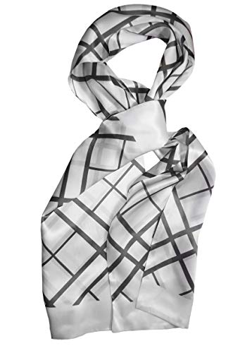 Posh Gear Uomo sciarpa di seta Quadrinata bianco 100% Seta