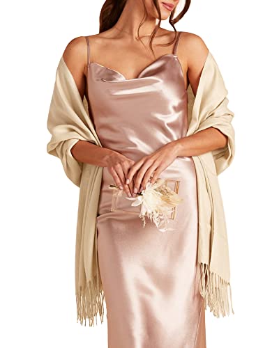 Sciarpa setosa da donna scialli pashmina e impacchi per bomboniere sposa regali damigella d'onore abito da sera scialle, 07 kaki, taglia unica