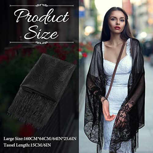 Sciarpa da Sposa Scialle in Pizzo Floreale con Frange Nero da Donna per Nozze