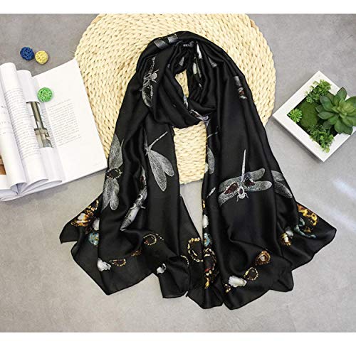 Sciarpa in raso (stili assortiti) per le donne grande 180 x 90 cm, elegante design di seta spessa di alta qualità, fascia, regali da donna per lei annuncio. Libellula 2 Etichettalia unica