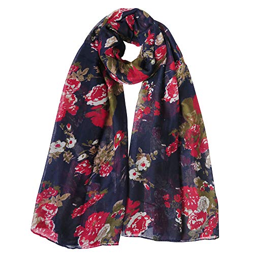 Lina & Lily Sciarpa Stola da Donna Floreale (Blu marino-B)