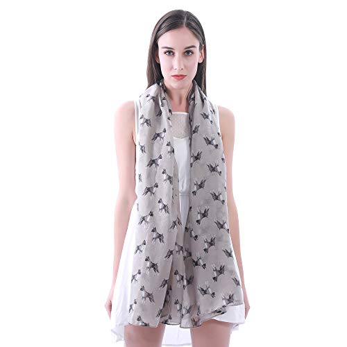 Lina & Lily Sciarpa Stola Donna con stampa Cani - Boxer (Cachi)