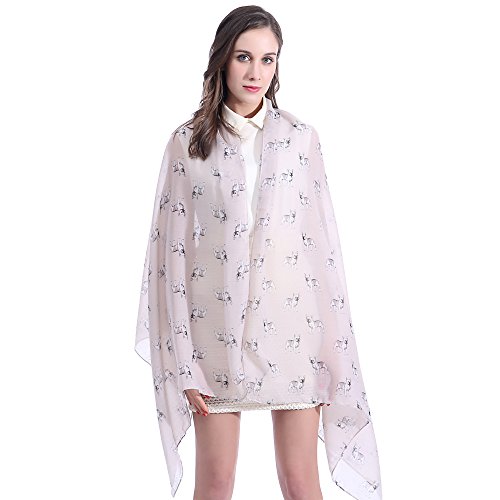 Lina & Lily Sciarpa Stola Donna con stampa Cani - Bulldog Francese (Beige)
