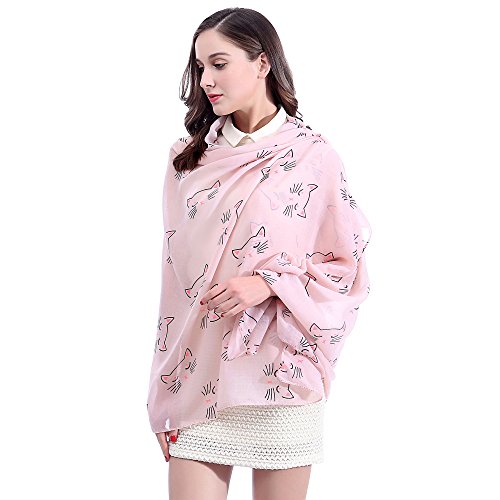 Lina & Lily sciarpa stola donna con stampa gatti (Rosa Chiaro)