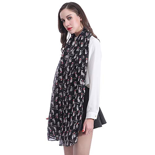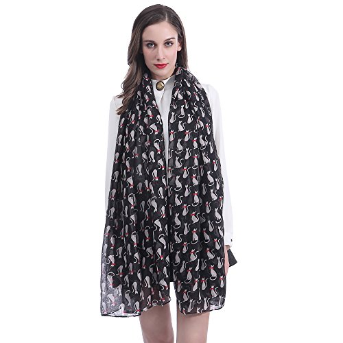 Lina & Lily sciarpa stola donna con stampa gatti (Nero)