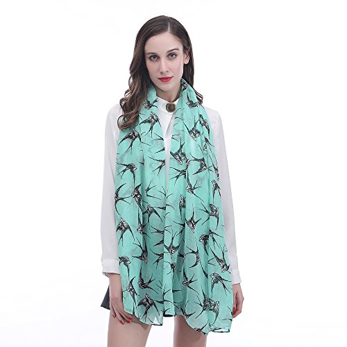 Lina & Lily sciarpa stola donna con stampa rondine uccelli (Verde menta)