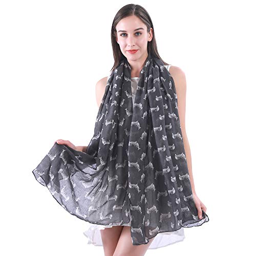 Lina & Lily Sciarpa Stola Donna con stampa Cani - Welsh Corgi Pembroke (Grigio)