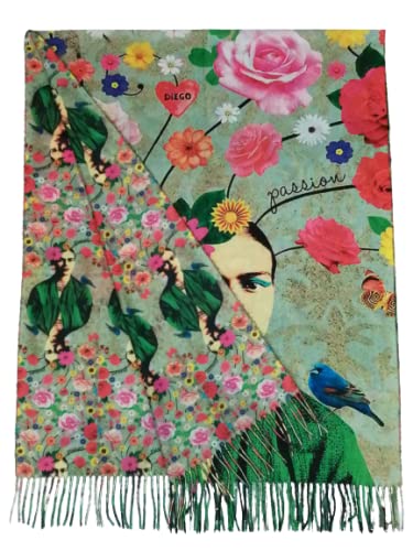Sciarpa viscosa doppia stampa Frida regalo donna arte moda stola foulard