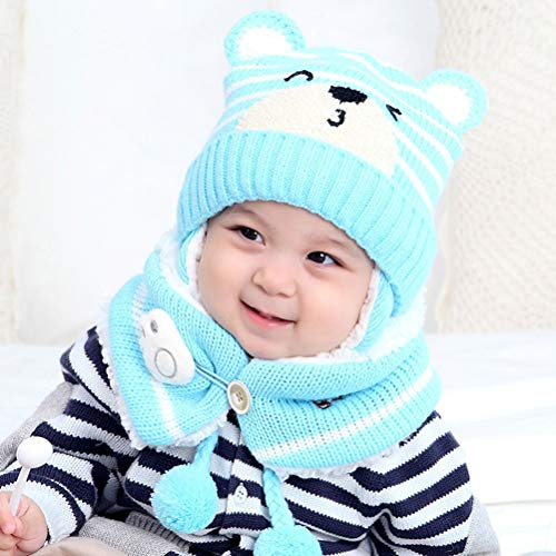 Set di Sciarpe per Bambini, Toddler Baby Kids Winter Warm Double Pom Bobble Knit Hat Beanie cap Sciarpa Set Paraorecchie Beanie Regalo Cappello Lavorato a Maglia Set Sciarpa Fazzoletto Caldo Cappello
