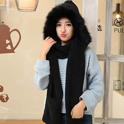 3 in 1 Sciarpe Cappello Guanti Donna Caldo Sciarpa con Cappuccio Tasche Earflap Lunghi Scialle Cappelli Guanto Invernali Berretti Tinta Unita Regalo di Compleanno Natale (Black)