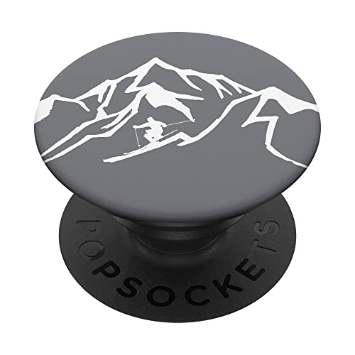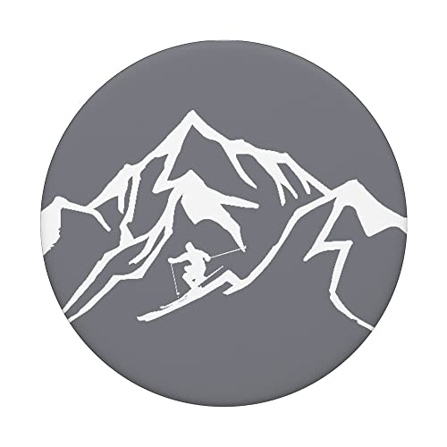 Sciatore grigio e bianco sciare giù una montagna PopSockets PopGrip Intercambiabile