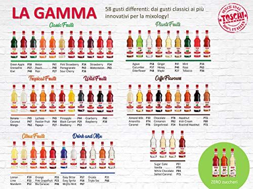 6 bottiglie da 1 litro nei principali gusti cocktail: Fragola, Passion Fruit, Granatina, Latte di Mandorla, Cocco, Zucchero di Canna. Toschi ti offre la possibilità di creare il tuo cartone da 6 bottiglie scegliendo da una gamma di 58 gusti
