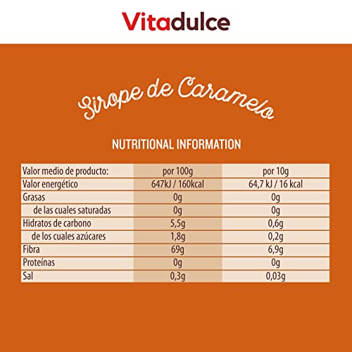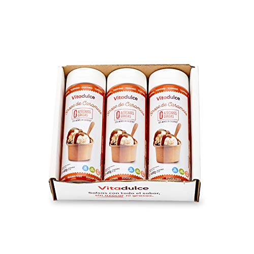 Sciroppo al caramello senza zuccheri aggiunti, Sciroppo ipocalorico, Topping al caramello 400gr. Set di 3 ud - Vitadulce.