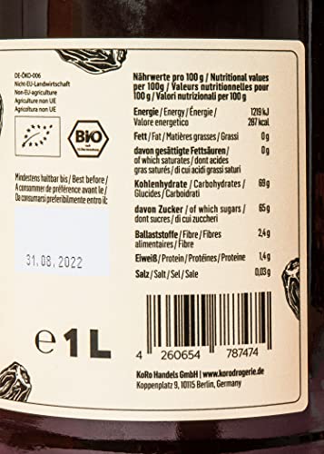 KoRo - Sciroppo di datteri bio 1 litro - Alternativa ideale allo zucchero - Aroma simile al caramello - Senza aggiunta di zuccheri e conservanti - Da aromatici datteri Deglet Nour