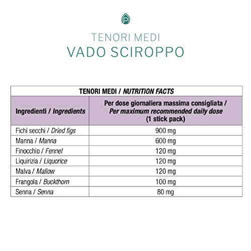 COSA CONTIENE? Manna e Fichi secchi agevolano il transito intestinale favorendo ottimali condizioni di volume e consistenza delle feci. Completano la formulazione piante emollienti e lenitive come Finocchio, Liquirizia e Malva e da ultimo Frangola e Senna.