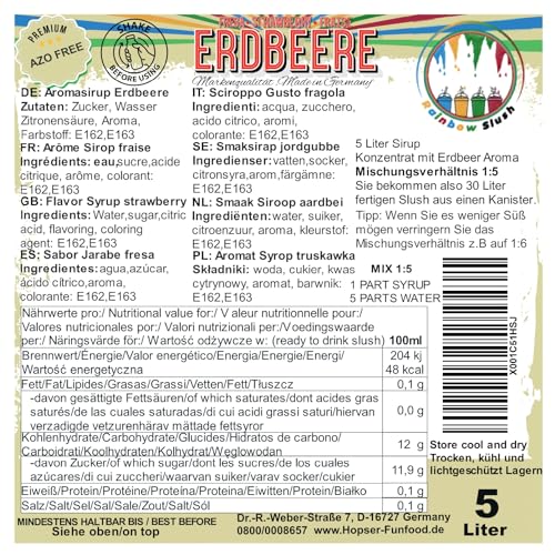 IL PRODOTTO - 5 litri di sciroppo fruttato concentrato di ciliegia con un rapporto di miscelazione di 1:5. Quindi ottieni 30 litri di granita finita da un contenitore. Suggerimento: se ti piace meno dolce, riduci il rapporto di miscelazione ad esempio a 1:6