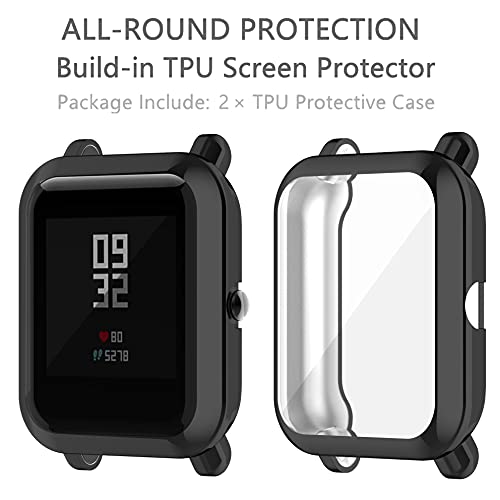 SciuU Cover Protettiva Compatibile con Amazfit GTS 2 Mini/Bip S/Bip Lite/Bip U, [Set di 2] Custodia con Protezione di Schermo in TPU, Morbida Copertura - Nero + Nero