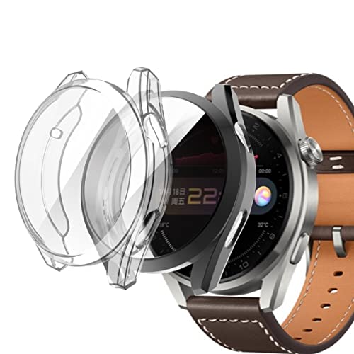 SciuU Cover Protettiva Compatibile con Huawei Watch 3 PRO Classic 48mm (1,43"), [Set di 2] Custodia con Protezione di Schermo in TPU Flessibile, Morbida Copertura Cornice Resistente - Nero + Chiaro