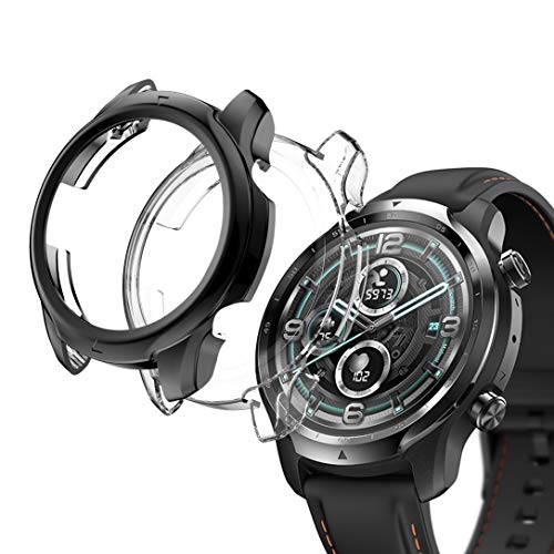 SciuU Cover Protettiva compatible con TicWatch Pro 3 / TicWatch Pro X, [2 Pezzi] TPU Case, Custodia Flessibile Morbida Copertura Cornice Specificamente per Pro 3 / Pro X - Nero + Trasparente