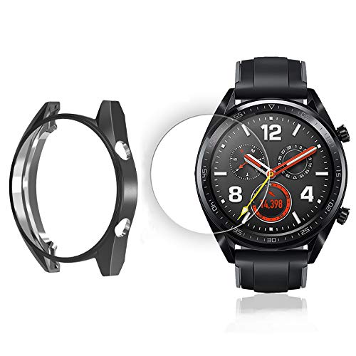 SciuU Cover Protettiva [1 Pezza] + Vetro Temperato [2 Pezzi] per Huawei GT Active 46mm 1° Generazione, Set di Custodia in TPU e HD Pellicola Protettiva AntiGraffio per Huawei GT 1 - Nero