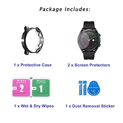 SciuU Cover Protettiva [1 Pezza] + Vetro Temperato [2 Pezzi] per Huawei GT Elegant 42mm, Set di Custodia in TPU e HD Pellicola Protettiva AntiGraffio per Huawei GT Elegant - Nero