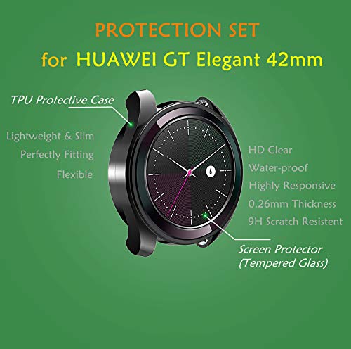 COMPATIBILITA' & RITAGLIO PRECISO - Custodia progettata specialmente per smart watch HUAWEI Watche GT Elegante, dimensioni cassa 42mm (NON per la versione Active / Sport / Classic 46mm).