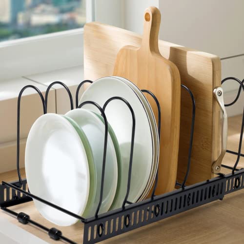 SCLLNDA Porta Coperchi Pentole Porta Padelle Porta Padelle Salvaspazio,Porta Pentole Allungabile con 7 Scomparti Regolabili Porta Padelle Salvaspazio da Cassettone per Padelle, Coperchi e Piatti,Nero