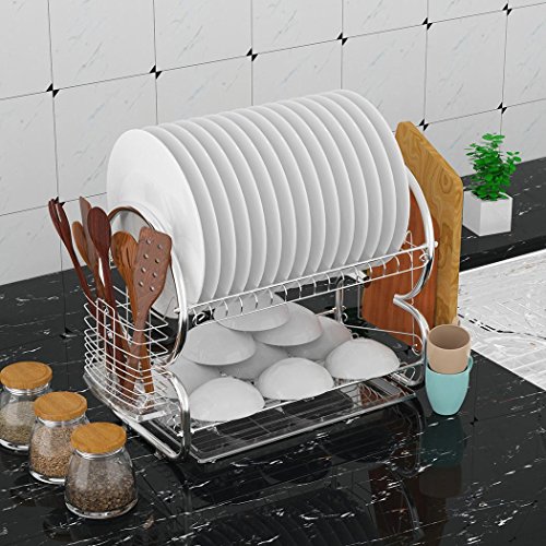 Scolapiatti, Scolapiatti da Mettere sul piano della cucina 2 Ripiani con Rimovibile Vassoio Gocciolamento, scolapiatti per cucina da appoggio
