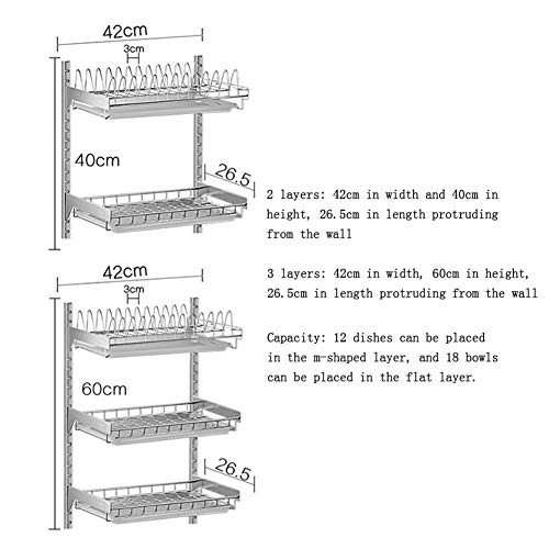 DISH RACK Scolapiatti A Parete Non Perforato, Altezza Regolabile, Scolapiatti in Acciaio Inox 304, Scodella per Vasca A Parete per Cucina, Due Strati, Tre Strati