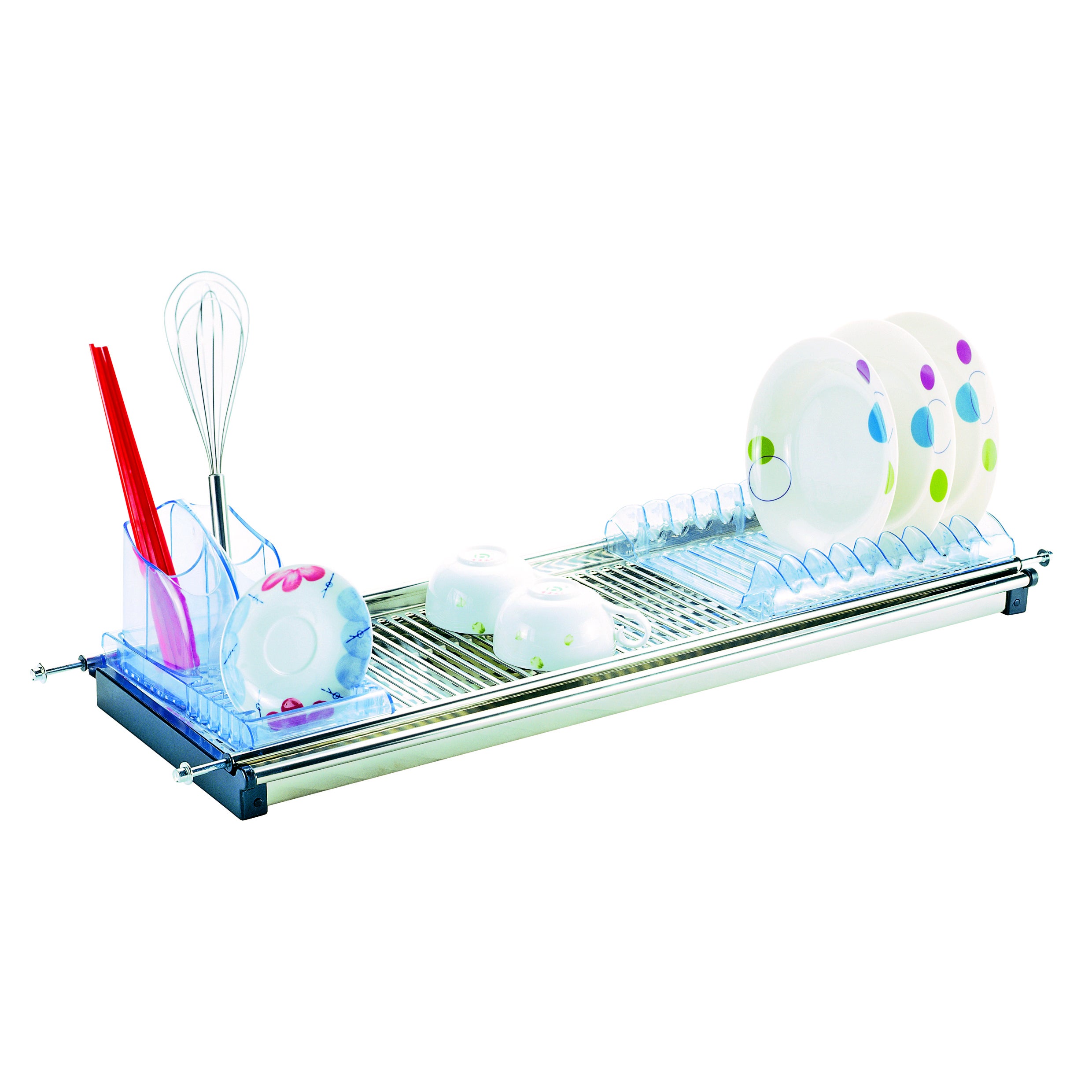 In acciaio inox, compreso di vaschetta raccogligocce, griglia portabicchieri, kit 4 staffe, griglia portapiatti. Indicato per pensili da 45 cm. Ideale per la sostituzione di scolapiatti da incasso. L'acciaio garantisce elevata resistenza nel tempo