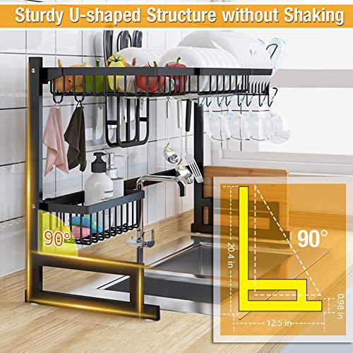 Scolapiatti Sopra il Lavandino, Regolabile (83,8 - 104,1 cm), Grande ripiano per Stoviglie con Portautensili e 5 Ganci, Robusto Scaffale in Acciaio Inox per Riporre il Bancone (nero)