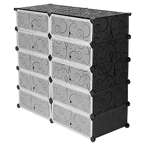 Scompartimenti a Cubo, Organizzatore, Scarpiera Salvaspazio, Portaoggetti in Plastica, Camera da Letto, Camera di Bambini, Armadio a 10 cubi portatile per riporre oggetti(5 piani e 10 porte)