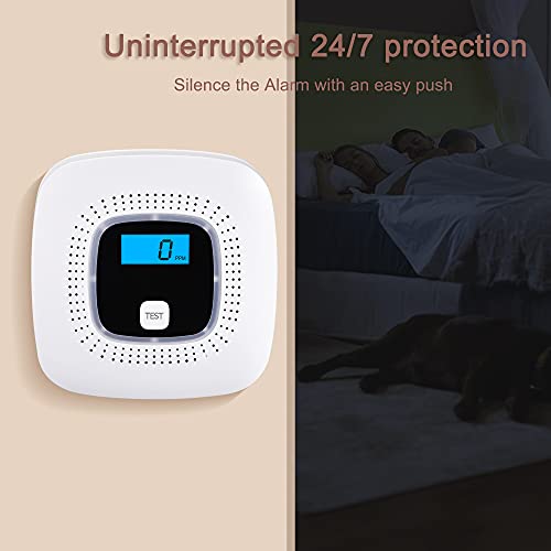 Scondaor Rilevatore di monossido di carbonio, rivelatore a batteria sostituibile dell'allarme di CO con il visualizzatore digitale, conforme alla norma di EN 50291