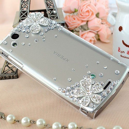 Sconosciuto Custodia rigida per Sony Ericsson Xperia Arc S/LT18i/Lt15i, con strass, motivo floreale in rilievo, trasparente