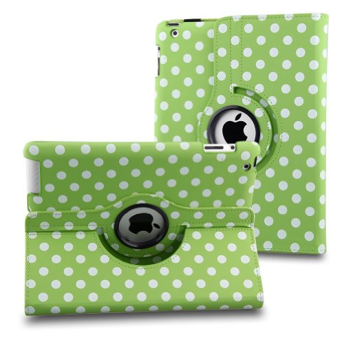 Contenuto della confezione: Apple iPad 2/3/4 con motivo puntini leggero 360 Degree girevole PU Flip pelle custodia case cover con stylus - verde