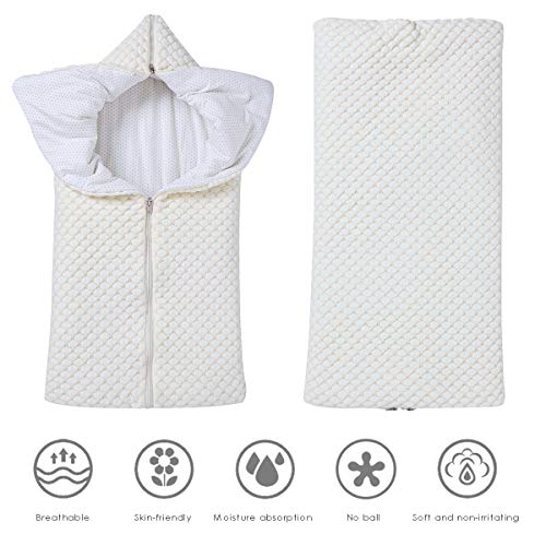 [USO VERSATILE]: questa coperta swaddle misura 14,2 pollici x 29,5 pollici quando è piegata, adatta a bambini di 0-12 mesi. Può essere usato come sacco a pelo, coperta, ordito per passeggino, materassino, fasciatoio, fasciatoio, per camera con aria condizionata, viaggiare, uscire con i genitori ecc. Anche un ottimo regalo per la doccia del bambino.
