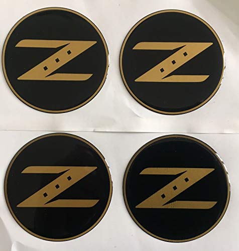 Scooby Designs - Adesivi in lega con logo 350Z 370Z Z con cupola per cerchi in lega, 4 pezzi, colore: nero e oro (60 mm)