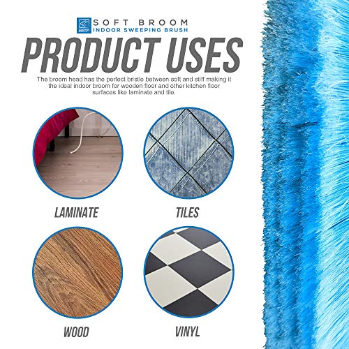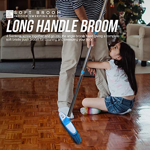 Scopa per interni con spazzola a setole morbide e manico in acciaio inossidabile - Scopa per pavimenti ideale per la casa - Scopa a setole morbide con manico lungo (Blu)