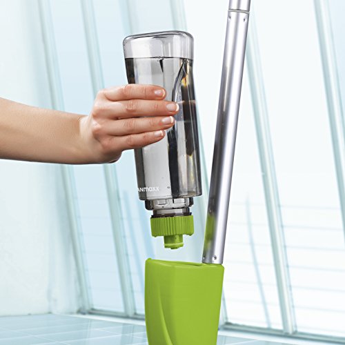 Scopa lavapavimenti a spruzzo con tanica XXL da 600 ml, innovativa scopa verde mela con funzione spray integrata, per pavimenti