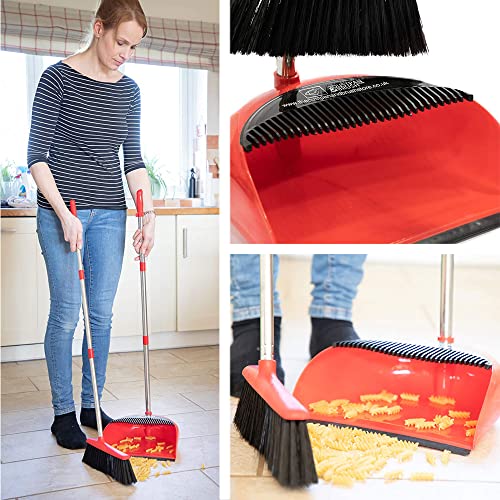 Set scopa e paletta con manico lungo - Scopa per spazzare con paletta lunga (Rosso)