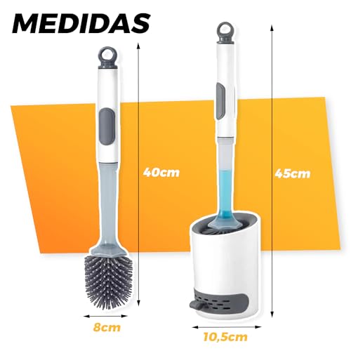 FACILE APPLICAZIONE: con la semplice pressione di un pulsante, puoi utilizzare il serbatoio del sapone che ha la portascopino wc o la toilet brush, in modo che il sapone fuoriesca sul fondo, essendo una spazzola in silicone ideale per mantenere pulito il WC.