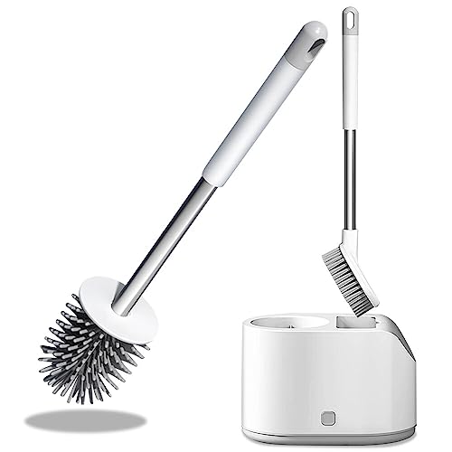 2 Pack Scopino WC Silicone, NAVESO Scopino per WC, Set di Spazzole per WC in Silicone, Spazzolone WC Bagno, Montaggio a Parete/in Piedi con Supporti ad Asciugatura Rapida