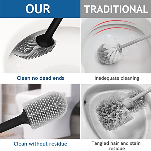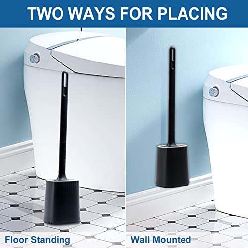 Scopino per WC, Spazzolone WC Silicone, Scopino per Wc con Portascopino ad Asciugatura Rapida, Scopino per WC Bagno, Porta Scopino per WC a Parete e in Piedi(2 Set di Ganci Adesivi)