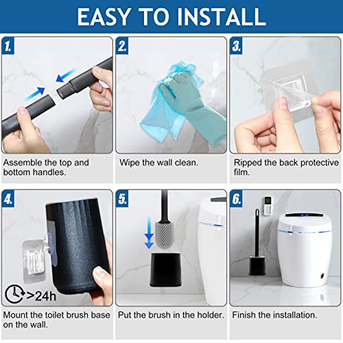 Scopino per WC da Appendere e da Appoggio: lo scopino per wc in silicone con supporto è facile da installare senza attrezzi. Con 2 set di ganci concavi/convessi non è necessario praticare fori nella parete per appenderla. I ganci adesivi in dotazione garantiscono una forte forza di tenuta e un alto tacco, pur non lasciano tracce sulla parete. Salvaspazio, si può anche mettere sul pavimento o in angolo, il che è molto pratico durante la pulizia