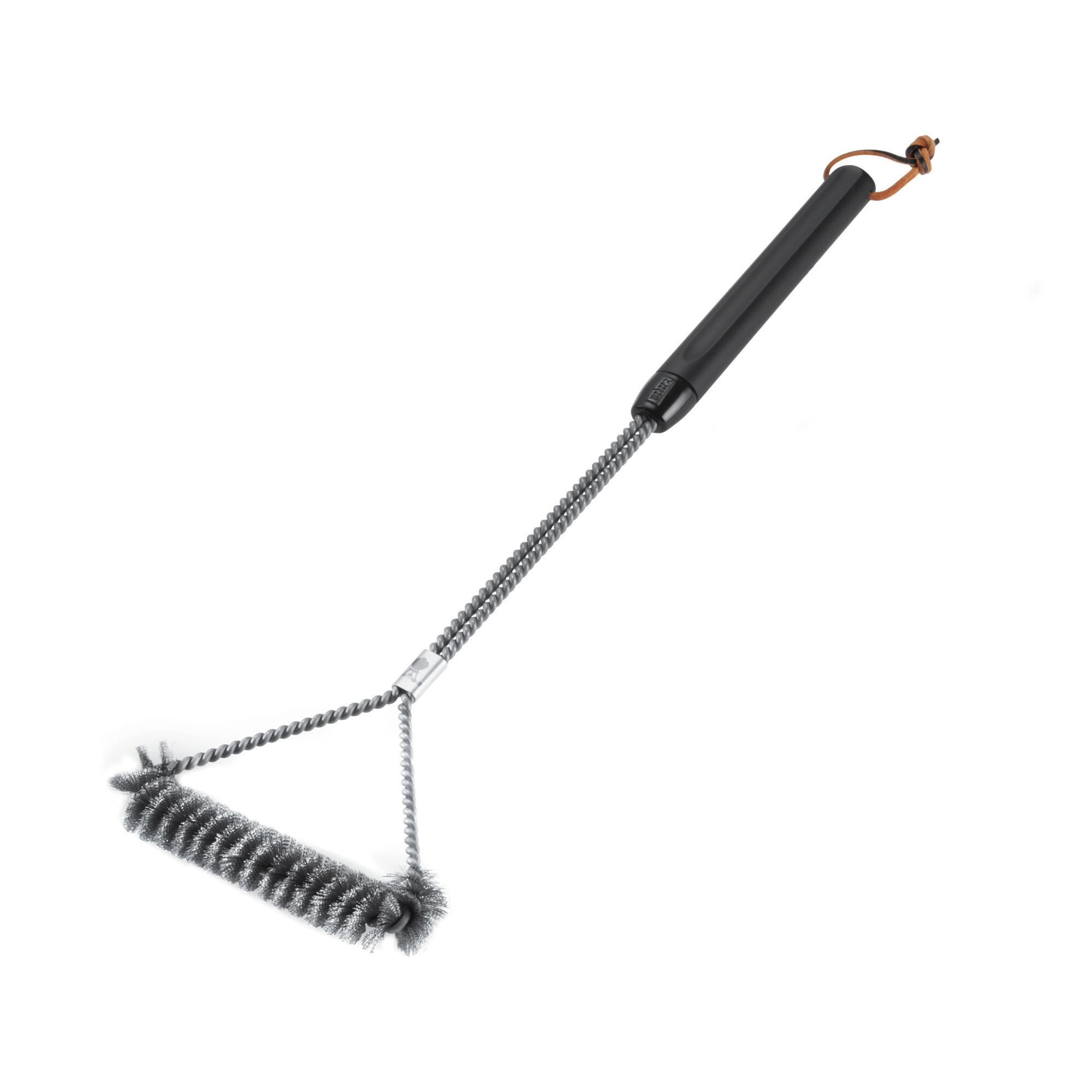 In acciaio, con manico in plastica termo indurita. Ideale per la pulizia delle griglie