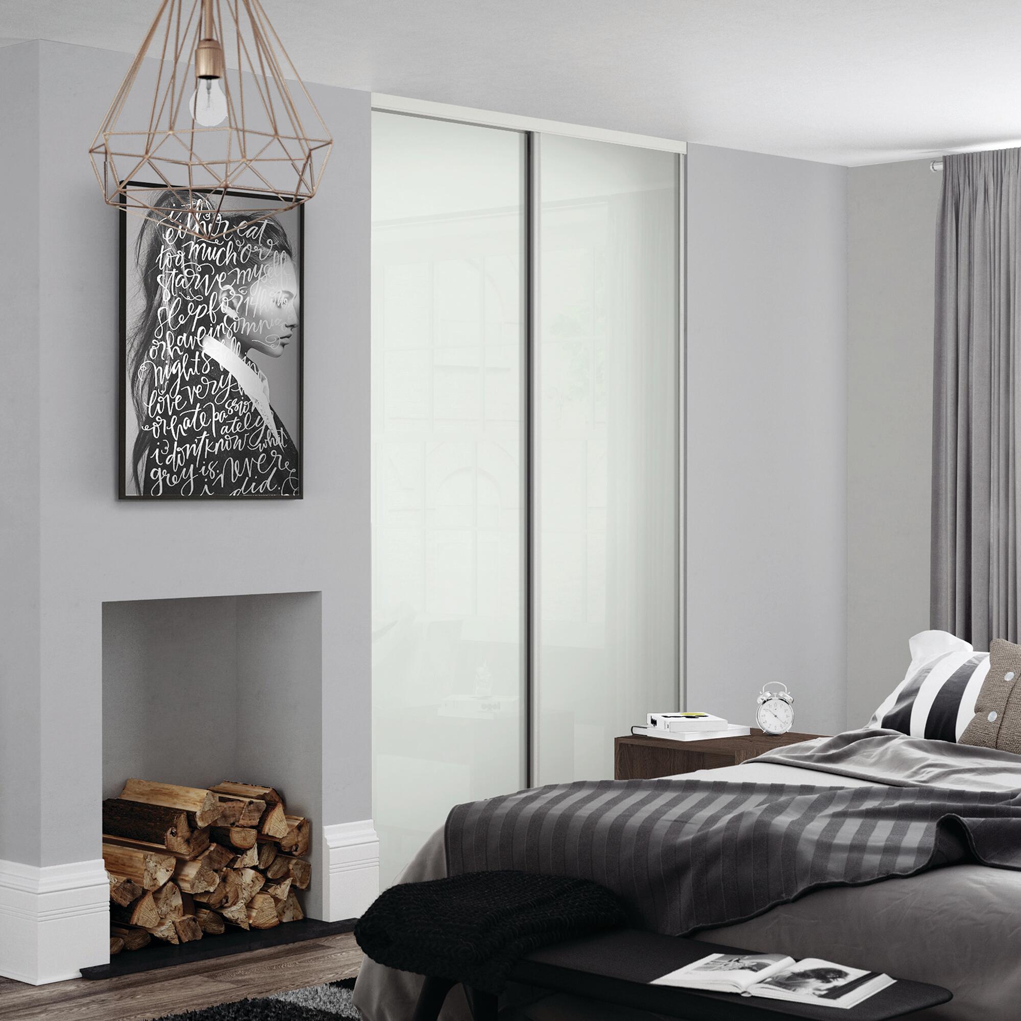 Ante monofacciali, apertura scorrevole, guida a terra. Comprensive di binari finitura vetro bianco.. Ante monofacciali rifinite su un lato, ideali per installazione in nicchia. Ideale per chiudere cabine armadio. Disponibile in negozio anche su misura. Garantisce una chiusura rallentata e silenziosa...