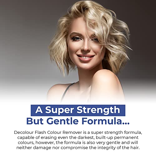 Gamma di metodi di applicazione: a differenza del tradizionale kit di rimozione dei capelli, Decolour Flash Remover è un uso multiplo e consente una selezione di metodi di applicazione tra cui 1) rimozione del colore flash (per cui vengono rimossi solo le estremità, i pannelli o le sezioni di colore dei capelli). 2) Rimozione del colore spot (in cui vengono rimosse macchie indesiderate di colore dei capelli) e 3) Riduzione del colore (per cui il colore dei capelli che potrebbe essere troppo scuro o pesante è ridotto di per. ha un'ombra o due)