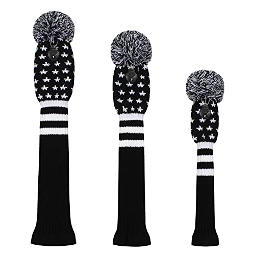 Scott Edward Set di 3 copritesta per mazze da golf in maglia per boschi (460 CC) Fairway e ibrido/UT con etichette numeriche rotanti (stelle nere)